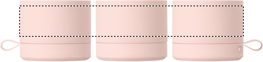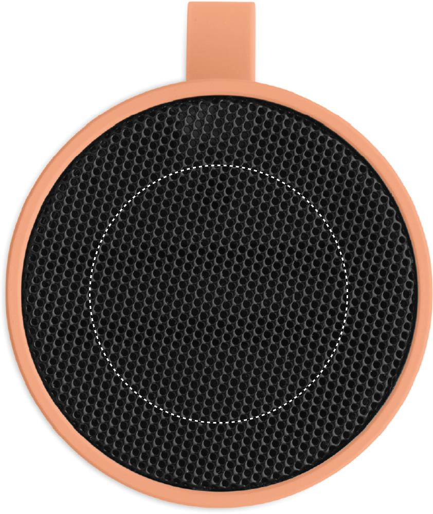 Langaton 5.1-kaiutin, jossa metallirunko ja kumipinta. 3 W monoääni. Sisältää ladattavan ja vaihdettavan 500 mAh akun. Kompakti ja moderni muotoilu.