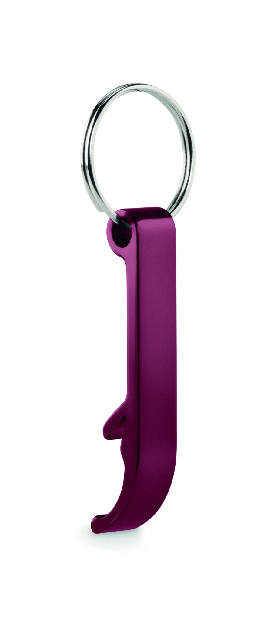 Kierrätysalumiinista valmistettu avaimenperä joka toimii myös pullonavaajana.