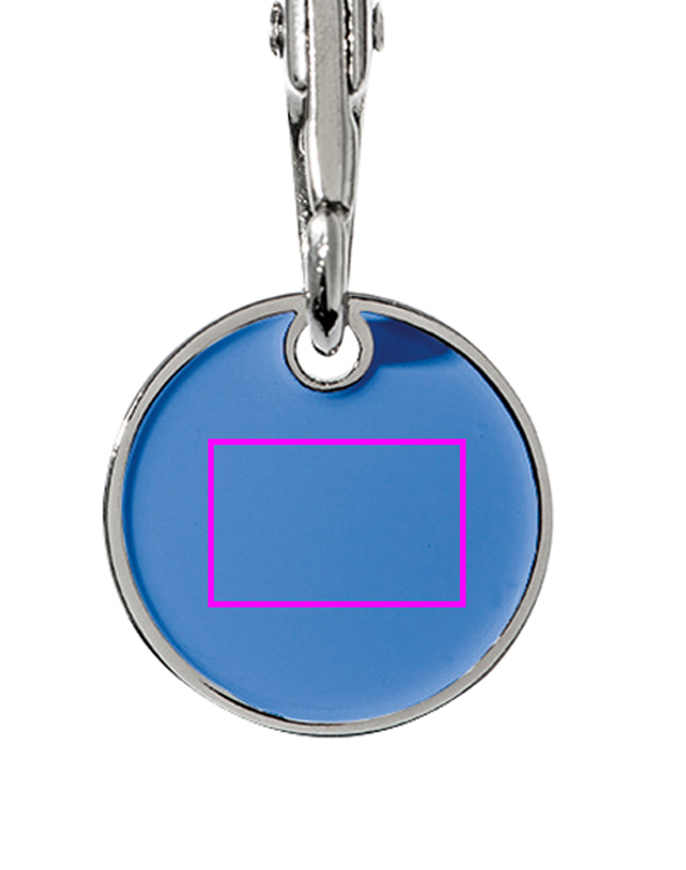 Metallinen avaimenperä, jossa neppari ja ostoskolikko. Kolikon toinen puoli on värillinen. Kaiverremme logosi hopeapuolelle.