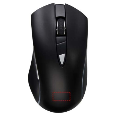 Ergonominen langaton hiiri, joka sopii täydellisesti kämmeneen. Hyvä rannetuki pitkiä työ-/pelisessioita varten. Hiiressä on 3 DPI-asetusta (800/1200/1600) kaikkiin herkkyysvaatimuksiin. Sisäänrakennettu 400 mAh:n ladattava litiumioni-akku riittää jopa 20 tunnin käyttöön LED-valon ollessa päällä. Jos logo on laserkaiverrettu, se syttyy ja loistaa. LED valon sävy vaihtuu satunnaisesti, kun hiiri on käytössä.