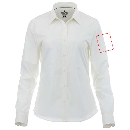 Hamell pitkähihainen naisten stretch-paita - ihanteellinen yhdistelmä tyyliä ja mukavuutta. Tässä kudotussa paidassa on kevyt popliinikangas, jossa on 97 % puuvillaa ja 3 % elastaania. Popliinikangas on tunnettu tiiviistä rakenteestaan, joka takaa poikkeuksellisen kestävyyden säilyttäen samalla pehmeän ja sileän tuntuman ihoa vasten. Tämä tarkoittaa, että Hamell-paita ei ole ainoastaan mukava päällä, vaan se kestää myös jokapäiväistä kulutusta ja takaa pitkäaikaisen käytön. Joustavuus tarjoaa äärimmäistä liikkumisvapautta, mikä takaa optimaalisen mukavuuden koko päivän ajan. Piilotettu nappikaulus lisää hienostuneisuutta säilyttäen samalla siistin ilmeen. Muotoonleikattu naisille istuvuuden takaamiseksi.