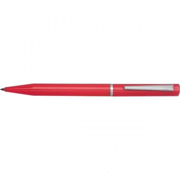 Kirjoitusvälinesetti, johon kuuluu sinisellä kirjoittava kierrettävä kuulakärkikynä, musteeton kierrettävä kynä ja pahvilaatikko. Molemmat kynät on valmistettu kierrätetystä ABS-muovista. Logosi on painettu molempiin kirjoitusvälineisiin.