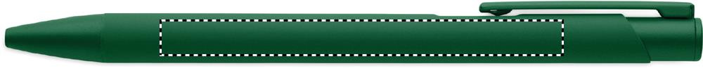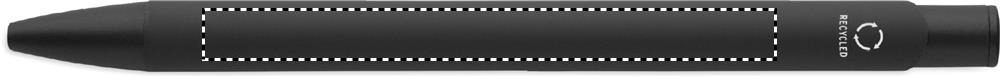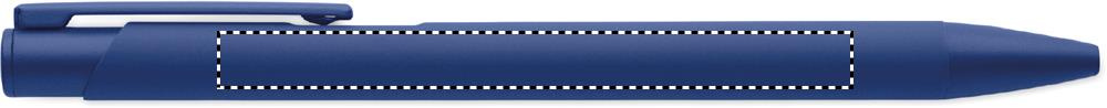 Kierrätetystä alumiinista valmistettu kynä, jossa on rautaklipsi ja värillinen kumipintainen runko. Sininen muste.