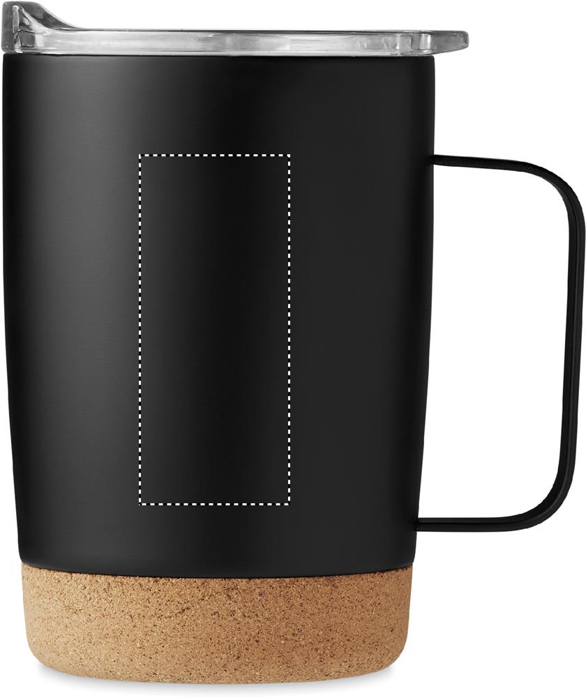Kaksiseinämäinen ruostumattomasta teräksestä valmistettu 300 ml juomamuki, korkkipohjalla ja liukuva sip-reiän kansi.