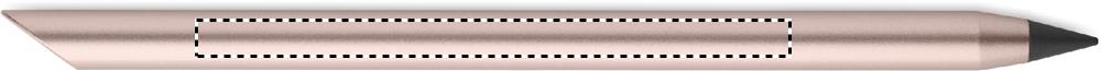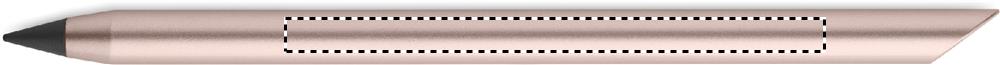 Pitkäikäinen kierrätetystä alumiinista valmistettu musteton kynä. Kynä kirjoittaa grafiittikärjellä, jossa on muovinen suojakuori.