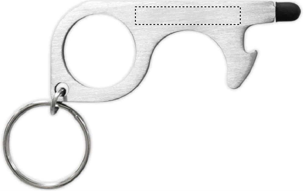 Monikäyttöinen 5-1 kosketusvapaa avaimenperä. Avaa ovet, paina erillaisia nappeja ja puhelinta koskematta. Tuotteessa pullonavaaja, kosketusnäyttöpää ja avainlenkki.