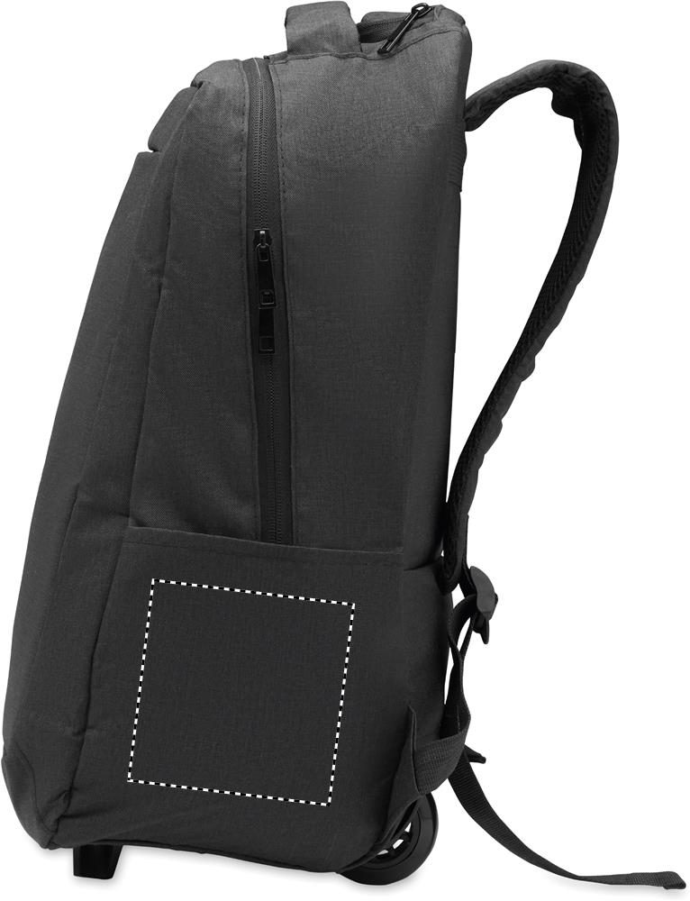 Logotrade liikelahja mainoslahja kuva: Pyörillä varustettu kannettava reppu 600D RPET-polyesteriä mukautettavalla painatuksella