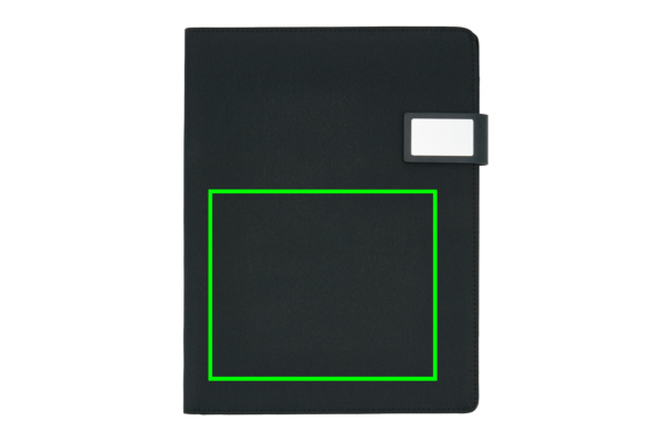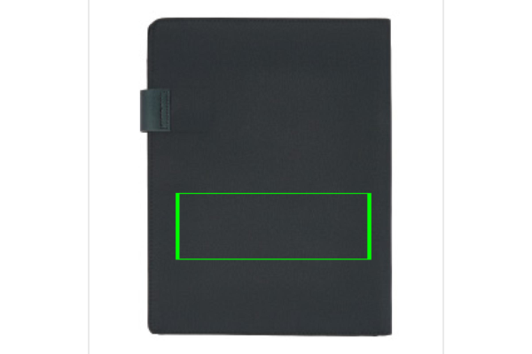 A4 tekninen kansio magneettisulkimella. Sisältää tabletti-/matkapuhelintelineen ja puhelinpidikkeen läpinäkyvällä ikkunalla, jonka avulla voit käyttää laitettasi. Sopii yleisimpiin puhelimiin, kuten iPhone 6 ja Samsung S6. Tasku papereita ja 2 korttia varten. Mukana myös kynälenkki. Sisältää 1 kierrätetyn A4 muistilehtiön 20 sivulla.