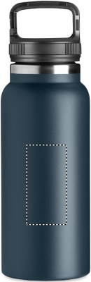 Kaksiseinäinen ruostumattomasta teräksestä valmistettu termospullo, jossa on ripustuslenkki korkissa. Tilavuus: 970 ml.