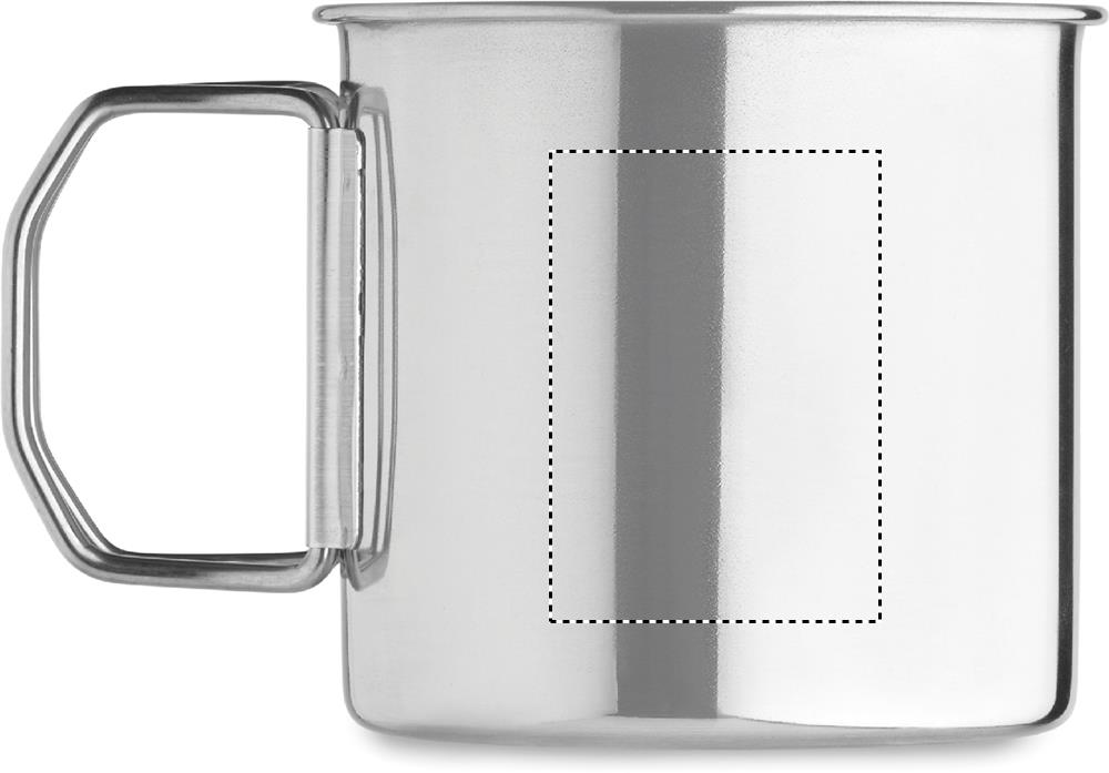 Yksiseinäinen ruostumattomasta teräksestä valmistettu muki, jossa on taitettava kahva. Tilavuus: 330 ml.