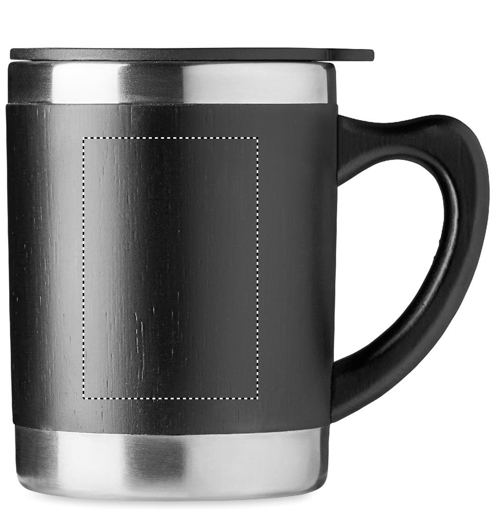 Kaksoisseinämällä ruostumaton terästermosmuki, jossa bambukuori ja liikutettava juoma-aukko. Tilavuus 300 ml. Koska bambu on luonnollinen materiaali, tuotteen väri voi vaihdella.
