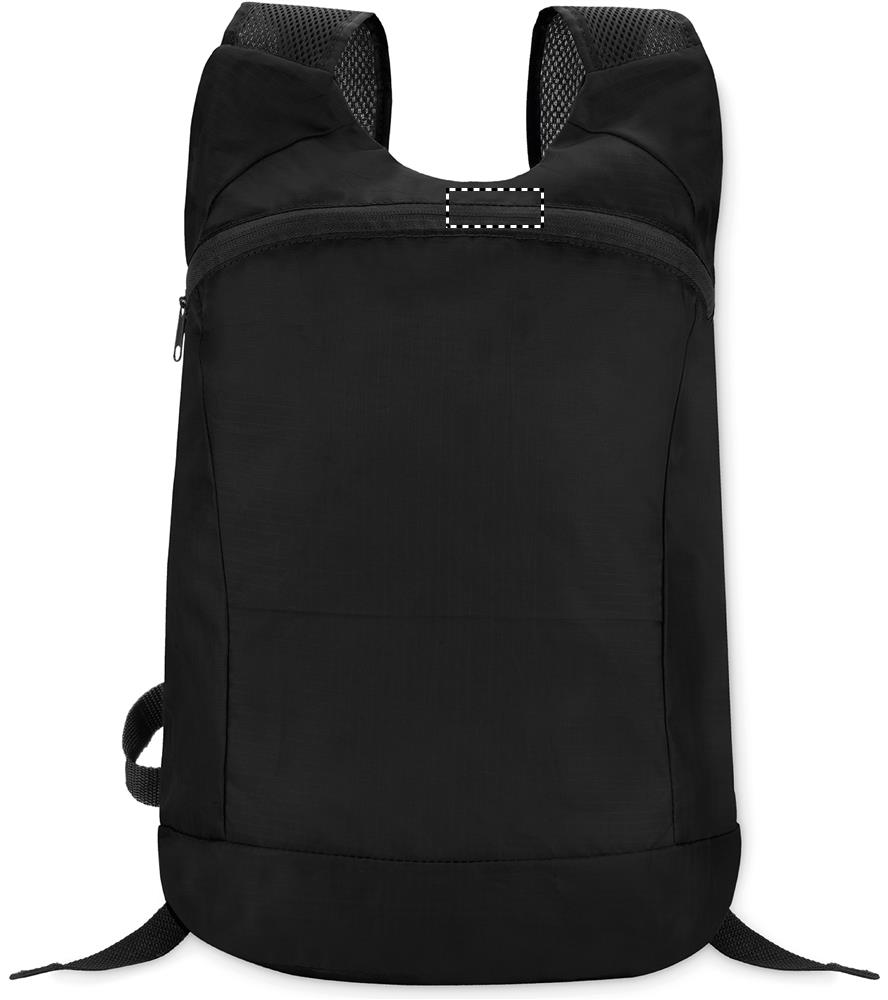 Kokoontaitettava urheilureppu ripstop-polyesteristä, vetoketju edessä ja verkkovuoratut olkahihnat, sisältää irroitettavan pienen pussin.
