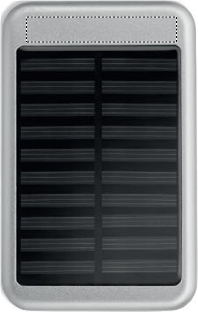 Aluumininen 4000 mAh varavirtalähde aurinkopaneelilla. Kapasiteetti älypuhelinkäyttöön, lähtövirta DC5V / 1A. Sisältää merkkivalon ja USB-kaapelin mikro USB-liittimellä.