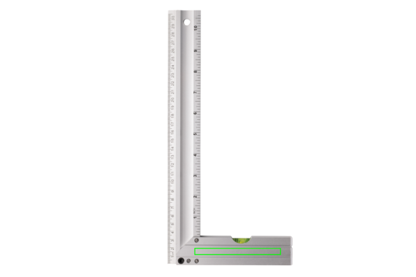 Ammattimainen alumiininen neliöviivain sisäänrakennetulla vesivaa'alla. Mittaa kulmat ja piirrä neliöitä ongelmitta. Kaksipuolinen merkkaus; toisella puolella CM (30) ja toisella puolella tuumat (10). Vesivaa'an tarkkuus 0.5mm.