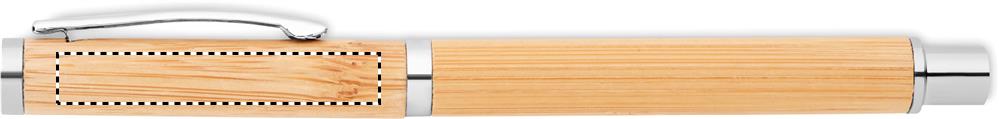 Bambuko cilindrinis rutulinis rašiklis su nerūdijančio plieno tvirtinimo detalėmis. Mėlynas gelio rašalas. Bambukas yra natūralus produktas, gali šiek tiek skirtis kiekvieno gaminio spalva ir dydis, o tai gali turėti įtakos galutiniam dekoravimo rezultatui.