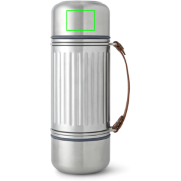 Ši 1 l talpos vakuuminė nerūdijančio plieno termoso pakuotė skirta bet kokiems nuotykiams – nesvarbu, ar leidžiatės į žygį, ilsitės paplūdimyje, ar lendate šlaitais. Dėl sustiprintos konstrukcijos ir patvaraus dizaino ji išlaiko gėrimus karštus arba šaltus iki 24 valandų. Visiškai nepralaidi, turi plieninį dangtelį su patogiu pilstymo mechanizmu ir du dvigubasienius nerūdijančio plieno puodelius dalinimuisi. Platūs puodeliai suteikia papildomo stabilumo ant nelygaus paviršiaus, o storas nailono dirželis leidžia lengvai nešiotis ar pilti. Silikoninė tarpinė apsaugo nuo lašėjimo laikant puodelius, o nuėmus dirželį termosą galima plauti indaplovėje.