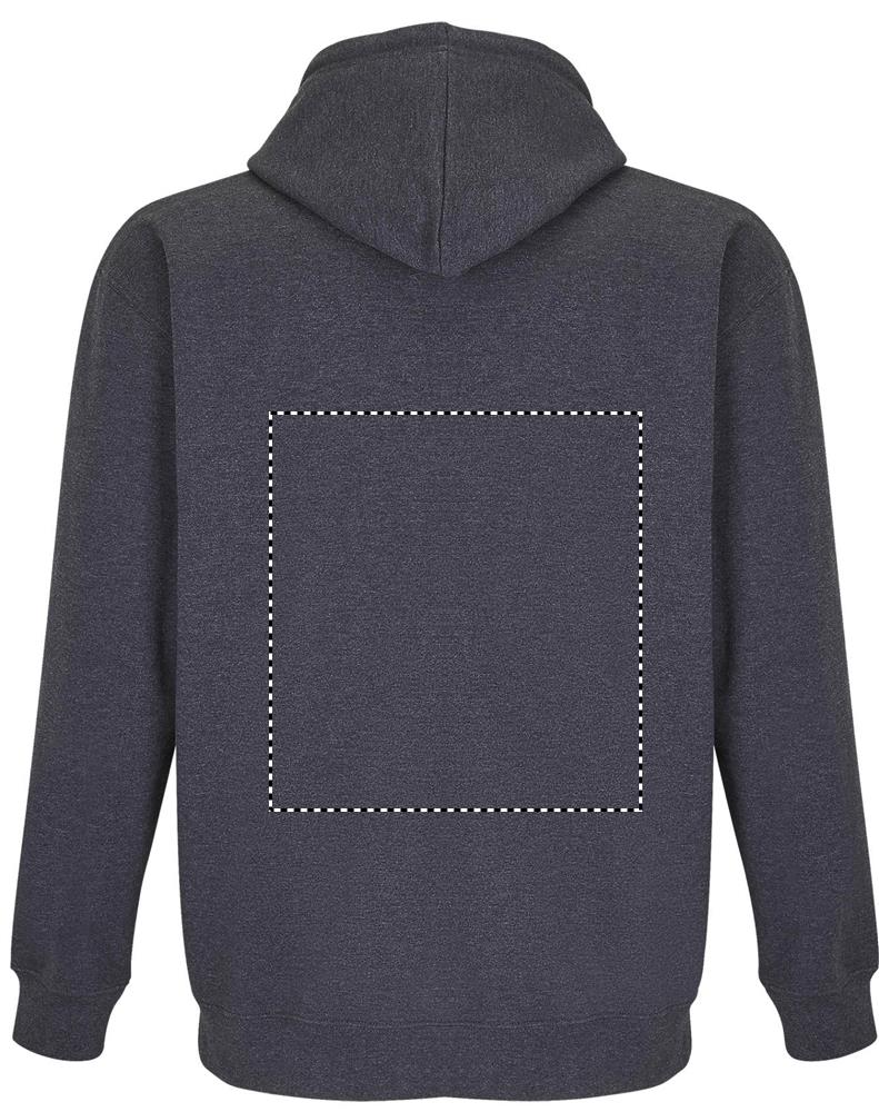 SOL'S CARTER, gobtuvas su užtrauktuku, 80 % medvilnė – 20 % Grs sertifikuotas perdirbtas poliesteris, įdedamos rankovės, iškirptos ir susiūtos, 1x1 briaunoti rankogaliai ir apačia, kengūros kišenė, pamuštas gobtuvas su raišteliais ant tono, ir metalinės akytės Su paslėptu užtrauktuku, tonas ant tonas įpurškiamas plastikinis užtrauktukas su atspalviu metaliniu užtrauktuku, džersio pusmėnulio ir kaklo juosta apykaklės viduje (1) Pilkas melanžas: 73 % medvilnė / 20 % perdirbtas poliesteris / 7 % viskozė,( 2) Melangis su anglimi: 60 % medvilnės / 40 % perdirbto poliesterio. Apie dydžių atitikimą žr. dydžių lentelę gaminio dokumentacijos skyriuje.
