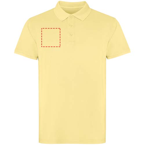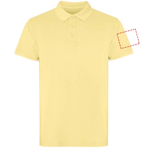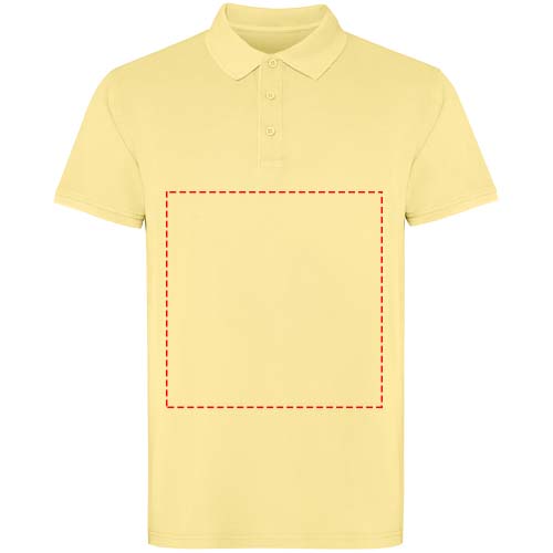 Trumpomis rankovėmis unisex polo marškinėliai. Rūgštyje skalbtas paviršius. Briaunota 1x1 apykaklė ir rankogaliai su šoniniais skeltukais. Tonas prie tono dengiančios siūlės. Apsiaustas su trimis sagomis.