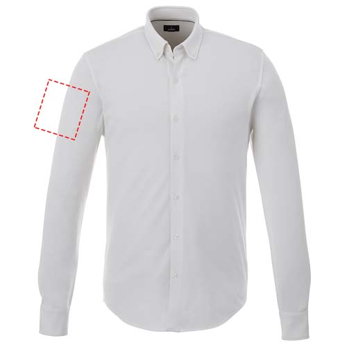Savarankiško audinio apykaklė. Tamprus audinys. Reguliuojamas rankogalis su viena kloste. Užsegama apykaklė. Satininiai vamzdeliai vidinėje kaklo dalyje. Dažyti, kad atitiktų, graviruoti mygtukai. Austa pagrindinė etiketė.