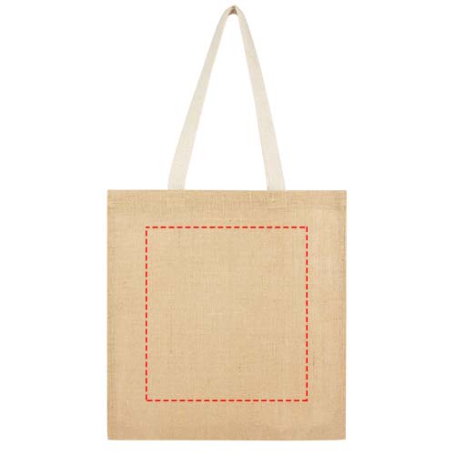 Juta 7 litrų rankinis krepšys yra kompaktiškas, tačiau pakankamai erdvus, kad galėtumėte nešiotis būtiniausius kasdienius daiktus, todėl tai puikus pasirinkimas apsipirkti, dirbti ar keliauti. Pagaminta iš tvirto ir dilimui atsparaus 300 g/m² laminuoto džiuto. Ilgos austinės medvilninės rankenos (30 x 2,5 cm) užtikrina patogų sukibimą net nešiojant krepšį ilgesnį laiką. Pagaminta Indijoje ir OEKO-Tex sertifikuota.