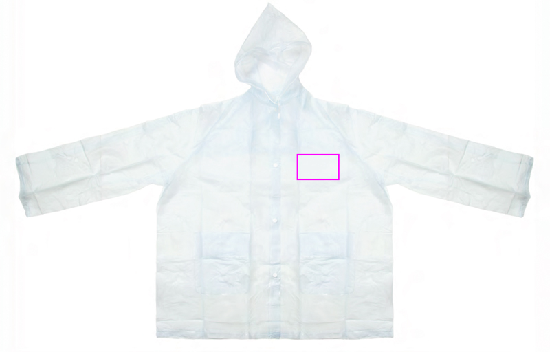 PVC striukė nuo lietaus (vienas dydis XL) permatomas matinis su gobtuvu, dviem priekinėmis kišenėmis ir sagomis. Ant krūtinės (širdies pusėje) atspausdinsime Jūsų logotipą.