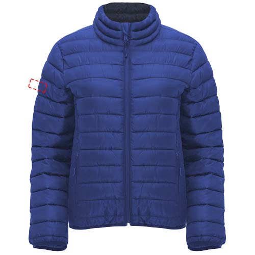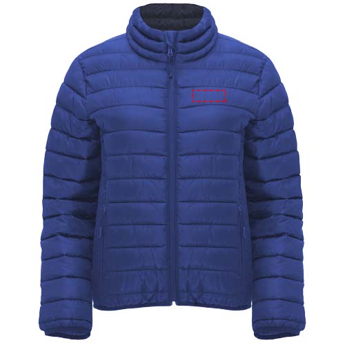 Moteriška dygsniuota striukė su plunksnų paminkštinimu. Apversti užtrauktukai su tinkama smakro apsauga ir trauktuku. Dvi priekinės kišenės su užtrauktukais. Derantys elastiniai apvadai apykaklėje, rankogaliai ir apačia. Kontrastingas vidinis pamušalas. Apima nešiojimo krepšį. Lengvas ir sulankstomas drabužis. Pritaikytas kirpimas. Nuimama etiketė. Atsparus vandeniui. Atsparus vėjui. Modelis yra 179 cm ūgio ir dėvi S dydį.