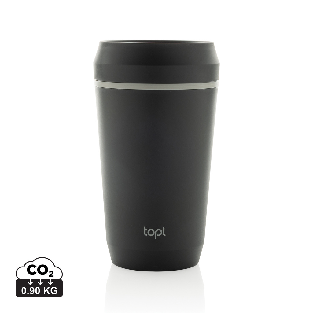 Logotrade reklaminės dovanos nuotrauka: „Topl“ perdirbto plastiko išsinešimui skirta stiklinė su patentuotu 360 laipsnių dangteliu, 354 ml