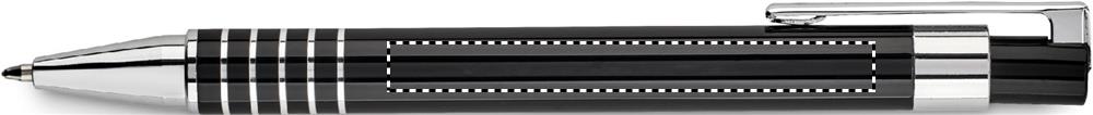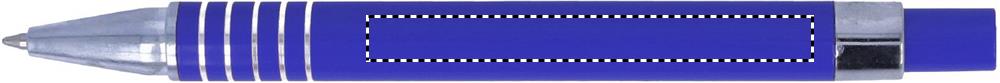 Aliuminio rutulinio rašiklio rinkinys, kurį sudaro mėlyno rašalo stumdomasis rašiklis ir mechaninis pieštukas atitinkamoje metalinėje dėžutėje.