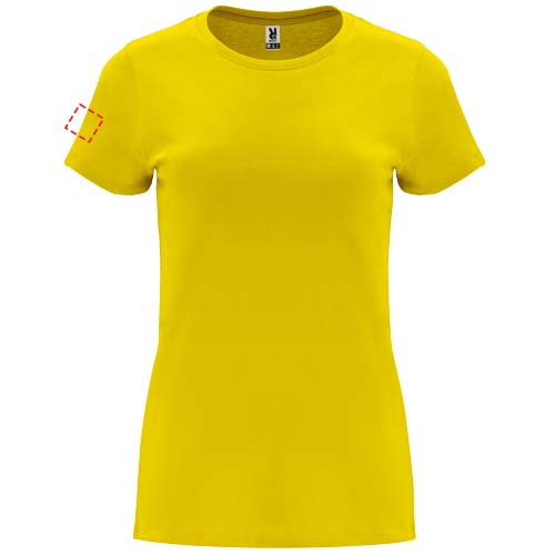 Pieguļošs sieviešu t-krekls ar īsām piedurknēm. 1x1 rievots apkalpes kakls. Pastiprinātas pārklātas šuves apkakle. Noņemama etiķete.