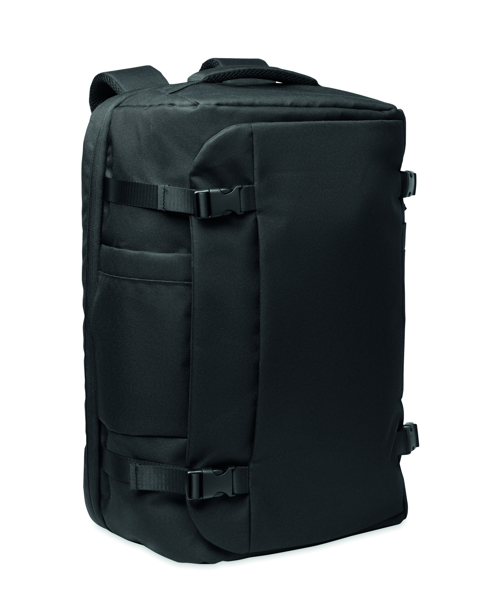 Liela ceļojumu mugursoma 17 collu klēpjdatoram no 600D RPET poliestera. Vairāki nodalījumi: viens galvenais nodalījums drēbēm, divi polsterēti nodalījumi klēpjdatoram, planšetdatoram un citām lietām. Polsterēta aizmugurējā daļa, plecu siksna, rokturis.