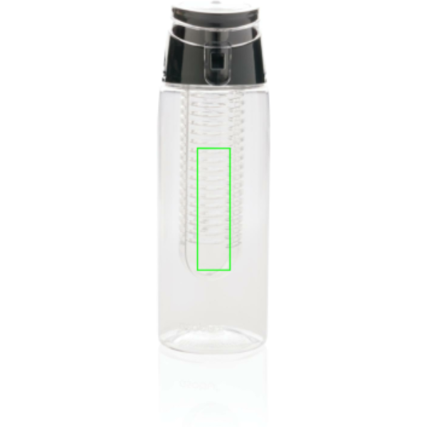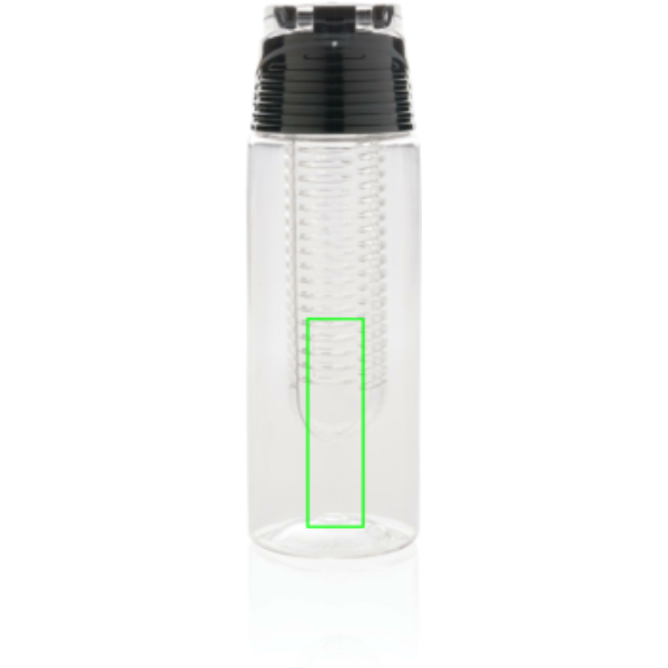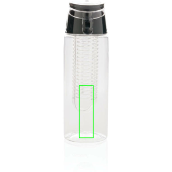 Moderna infūzijas pudele, lai aromatizētu ūdeni ar iecienītākajiem augļiem vai garšaugiem. Korpuss ir izgatavots no tritāna materiāla, tāpēc tas ir izturīgs pret skrāpējumiem un izturīgs. Vāks ir izgatavots no ABS, un tam ir bloķēšanas sistēma, lai jūs varētu paņemt līdzi savu aromatizēto ūdeni, lai kur jūs dotos. Tilpums 700 ml.
