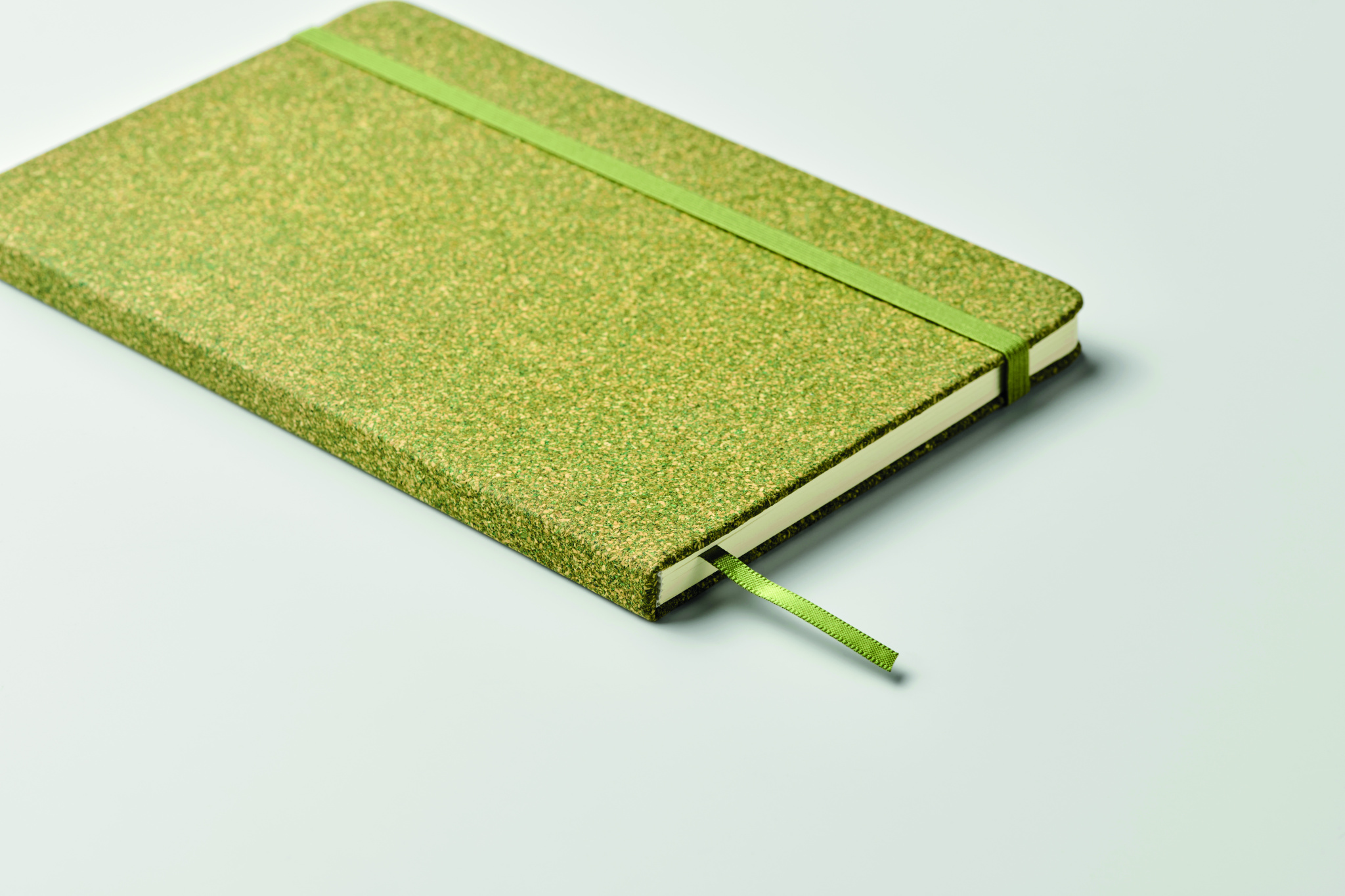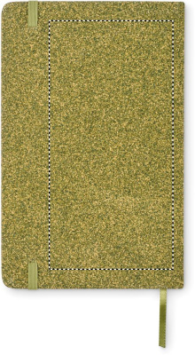 A5 notebook with hard cover made of 20% tea grounds, 30% cork and 50% polycotton cloth. Casebound.160 lined recycled paper pages (80 sheets/70gsm). Matching elastic closure strap and ribbon page-marker. FSC®-certified | FSC MIX CREDIT, N7.1, FSC-C213206