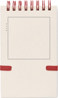 Блокнот A6 из переработанного картона на резинке. 70 листов (70% переработанного картона и 30% переработанной бумаги) в комплекте с ручкой. Синие чернила. Кольцевое скрепление. Держатель для ручки.