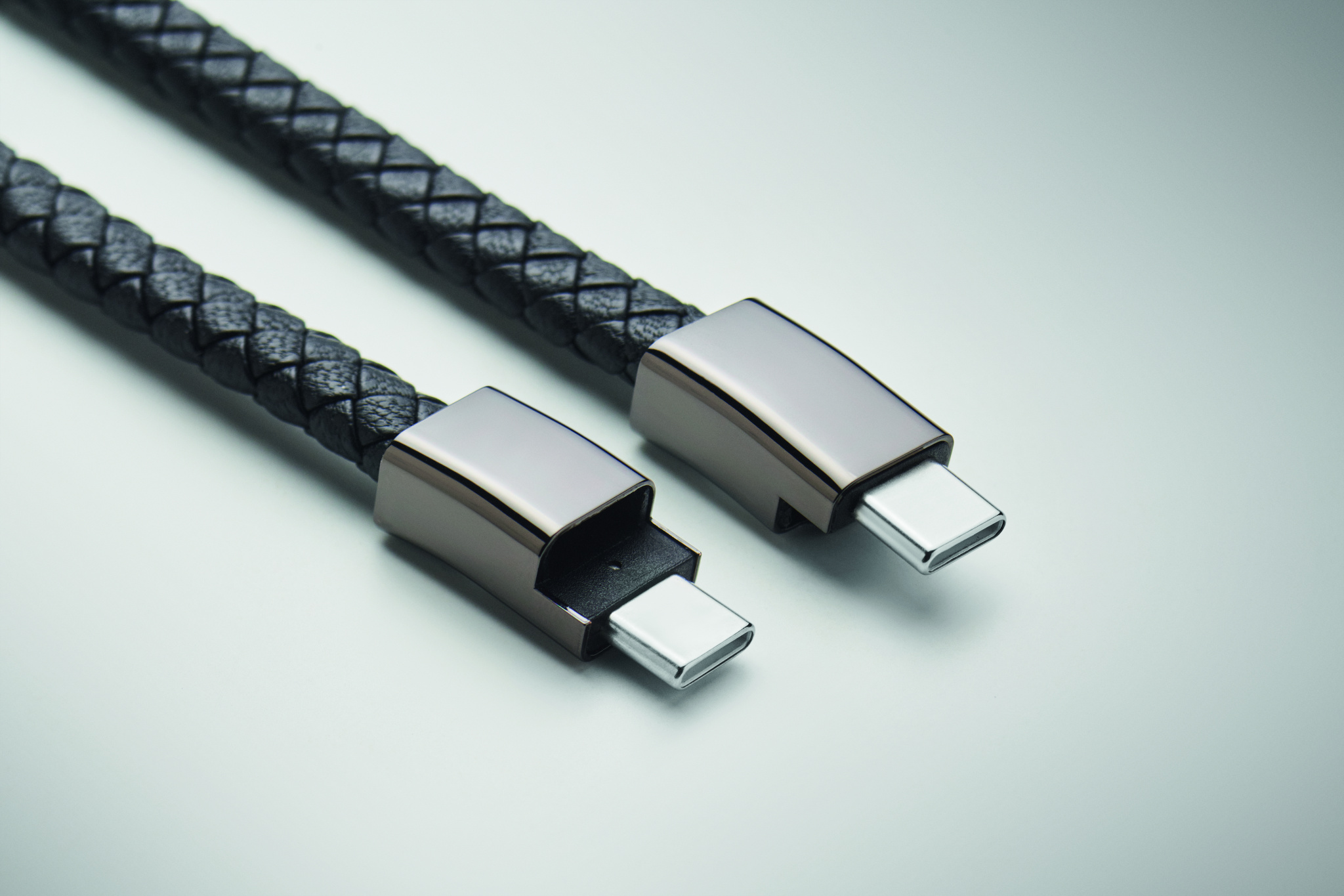 Bracelet with charging and data transfer 60W cable type-C to type-C in PU with zinc alloy braided detail. Wrist circumference approx.: 21 cm.