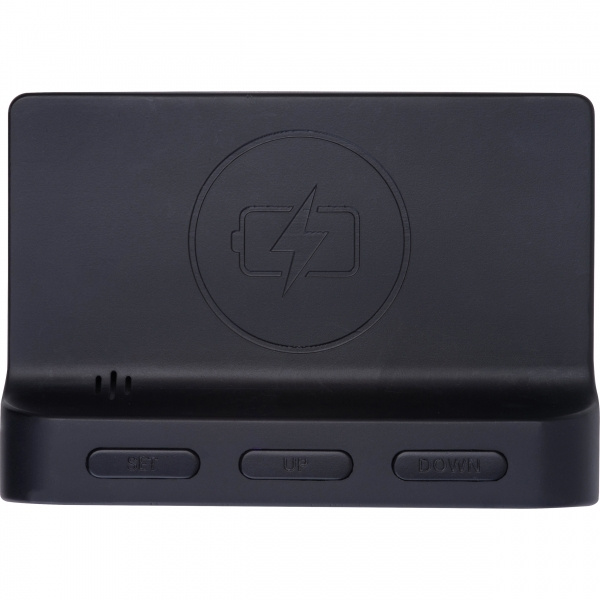 Лого трейд бизнес-подарки фото: Будильник и беспроводное зарядное устройство ADELAIDE