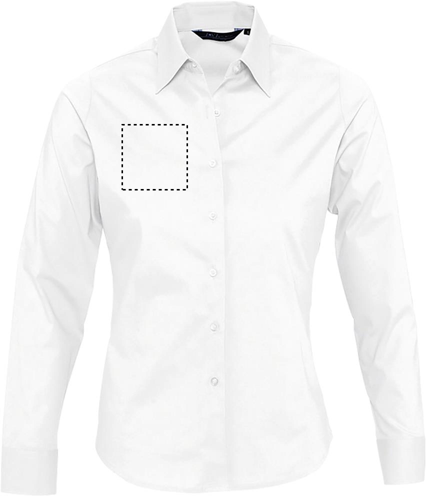 SOL'S EDEN women shirt 140g. Эта выполненная из хлопка с добавлением эластана рубашка приталенного покроя хорошо держит форму и комфортно носится. Очень актуальная модель. Приталенная модель. Длинный рукав. Воротник на одной пуговице. Регулируемые манжеты на 2 пуговицах и разрез рукава ''капуцин''. Планка с 7 пуговицами в цвет изделия. Вытачки спереди и на спине. Fabric details: Поплин 97% хлопок - 3% эластан. OEKO-TEX. Only Sold with Print.