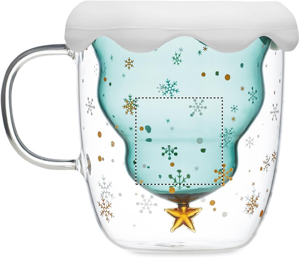 Кружка с двойными стенками из боросиликатного стекла с сезонным дизайном, силиконовой крышкой и подставкой. Объем: 250 мл.