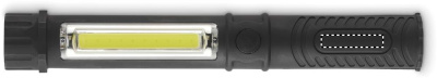 Magnetic LED work light torch in ABS with clip and side COB light. Features magnetic base for hands-free use. Requires 3 AAA batteries (not included).