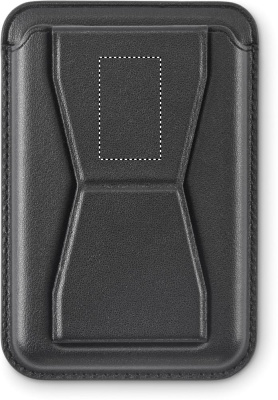 PU leather phone cardholder (for 2 cards) with stand function and magnetic closure. Compatible with iPhone® 12 and newer. Including magnetic metal ring to support charging of other non-magnetic wireless chargeable phones.
