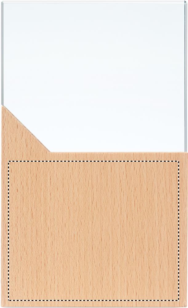 Хрустальная награда или наградная табличка на деревянном основании из бука в подарочной коробке.