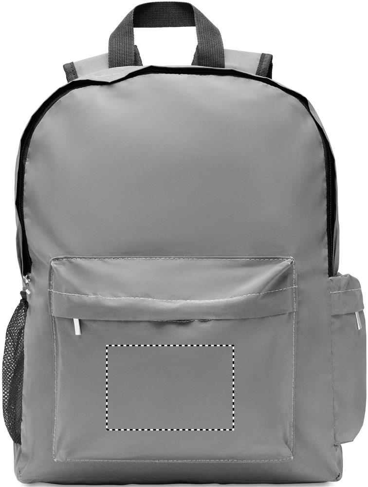 Рюкзак светоотражающий из полиэстера 190T. Имеет отделение для ноутбука 15 дюймов. Передний карман на молнии, боковой сетчатый карман и боковой карман на молнии. Для комфорта мягкая спинка из переработанного полиэстера 600D.