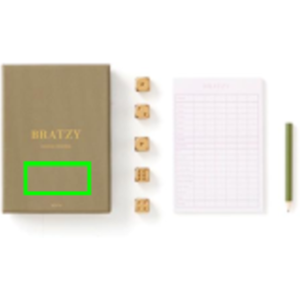 Это Yatzy в роскошной упаковке! С золотыми кубиками и столь же эксклюзивным карандашом мы превращаем Yatzy в Bratzy. Эта игра поставляется в стильной коробке с золотым текстом, напечатанным на ней, что делает ее и забавной для дарения, и приятной деталью на журнальном столике.