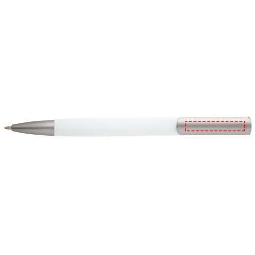 Шариковая ручка с корпусом из переработанного алюминия и посеребренным зажимом из пластика ABS. Цвет чернил: синий. Длина непрерывной линии: 800 метров. Размер пера: 1,0 мм.
