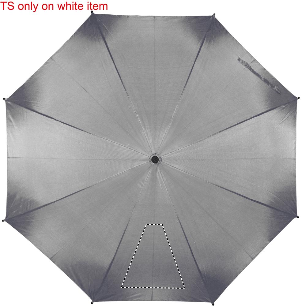 Зонт полуавтомат устойчивый к ветру с черным металлическим стержнем и черной пластиковой ручкой. Открытый купол диаметром Ø 103см