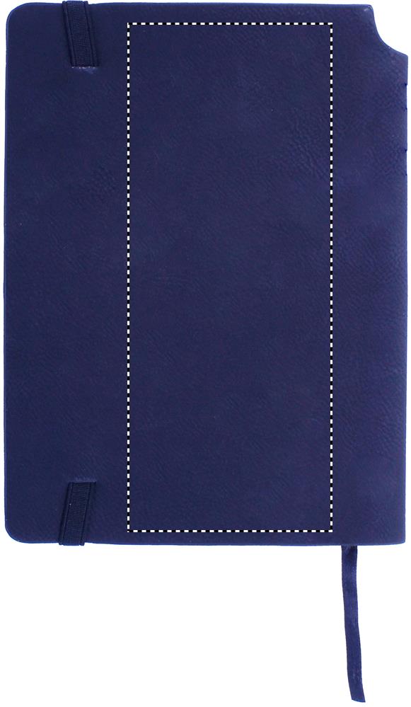 Anteckningsblock A5 i PU, 80 st linjerade papper och ficka på baksidan. Bokmärkesband i satin och elastisk gummisnodds förslutning. Praktisk pennhållare på ryggen.