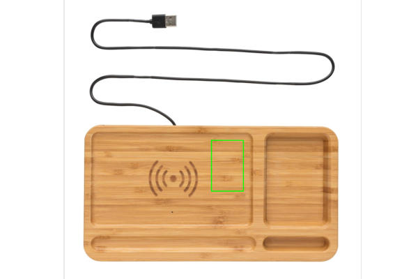 Den perfekta artikeln för ditt skrivbord! Skrivbordsorganisatören i bambu hjälper dig att hålla ordning och reda och samtidigt ladda din telefon trådlöst. Inklusive 150 cm micro USB kabel för att ansluta laddaren till en strömkälla. 5W trådlös laddning. Input DC 5V/1.5A. Output: 5V/800mA.