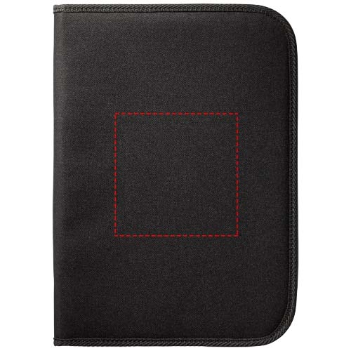 Mapp med blixtlås, dokumentfickor och anteckningsbok med 20 linjerade sidor. Pennor och tillbehör ingår inte.