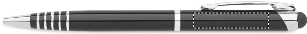 Kulspetspenna i återvunnen aluminium med vridmekanism och stylus. Blått bläck.