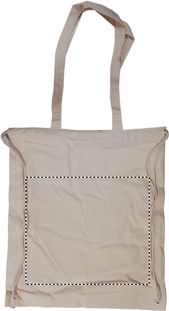 Kombinerad kasse och gymnastikpåse i bomullscanvas med långa handtag och dragsko somkan bäras som ryggsäck. Kvalité: 220 g/m2.