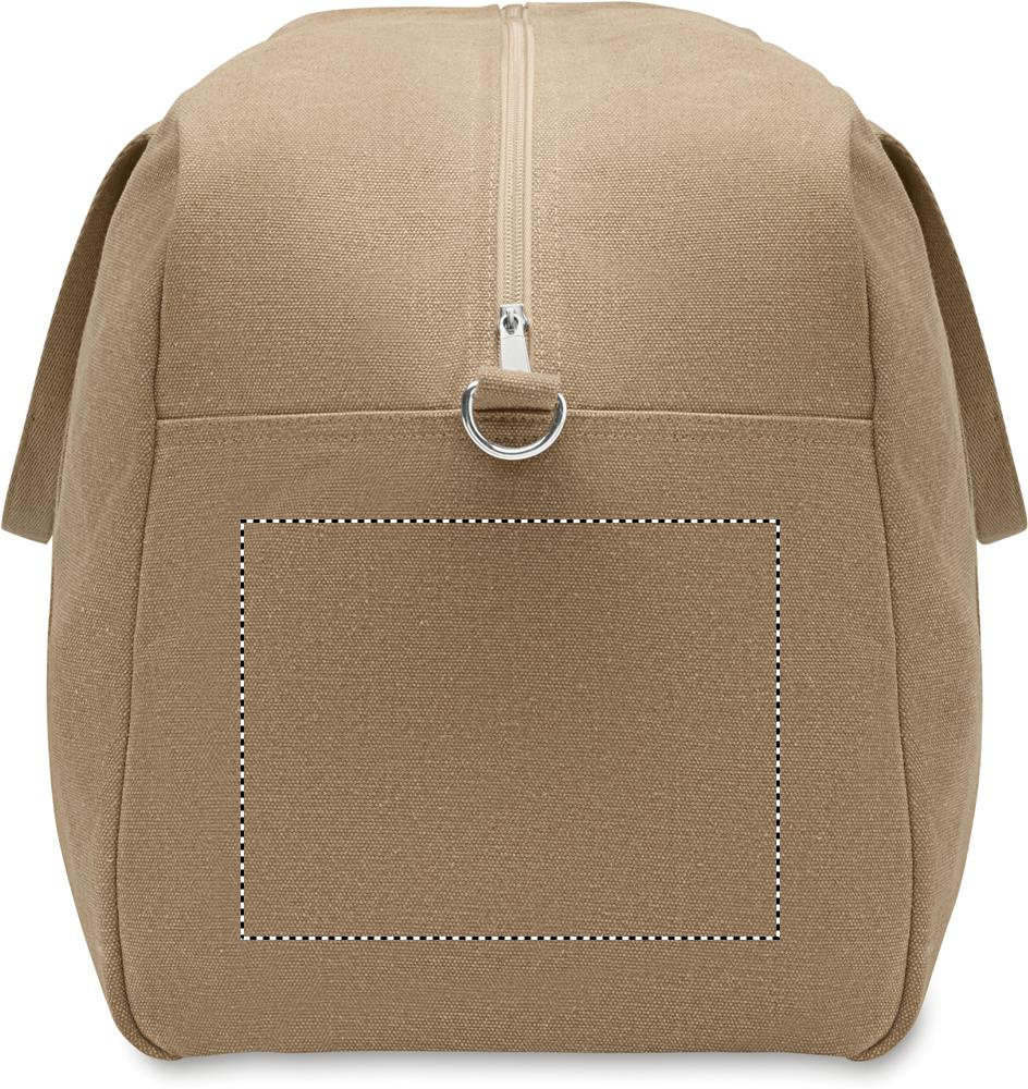 Duffelbag/väska i 450 gr/m² återvunnet material (60% återvunnen bomull och 40% återvunnen polyester) med en justerbar och avtagbar bomullsrem.